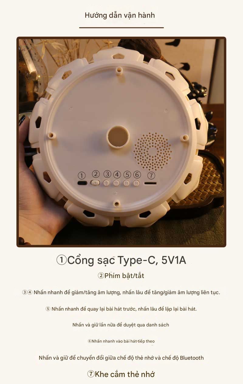 Máy niệm phật hoa sen năng lượng mặt trời có đèn (XH13D)